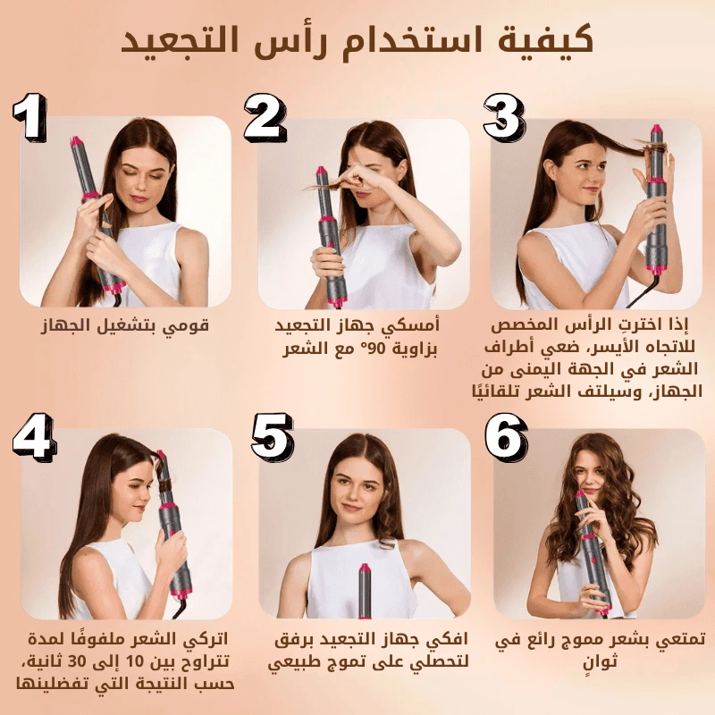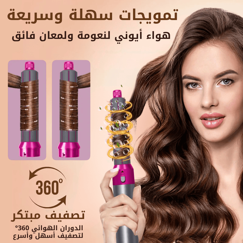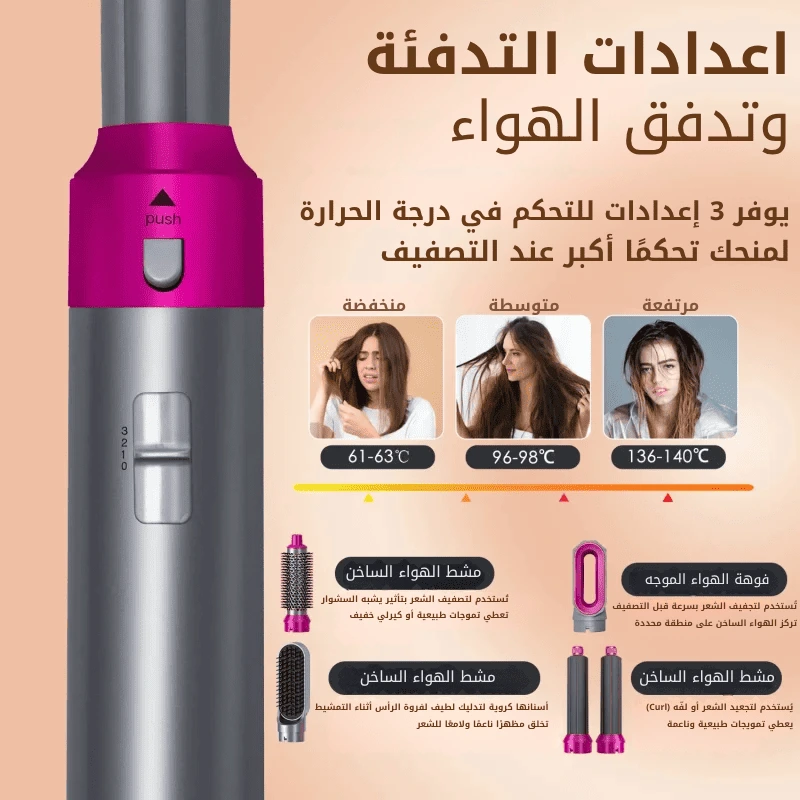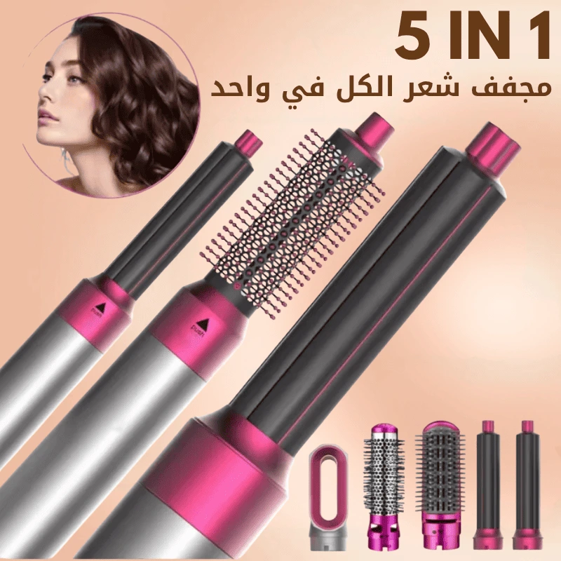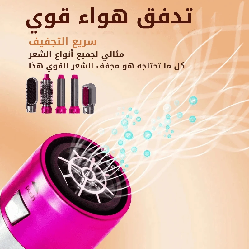 أداة تصفيف الشعر 5 في 1: يأتي مجفف الشعر بالهواء الساخن للنساء مع خمس فرش قابلة للتبديل يمكنها فرد الشعر وتجعيده ودمج مجفف الشعر مع فرش التصفيف، ويمكن أن تناسب أطوال الشعر المختلفة وتخلق تسريحات مختلفة.