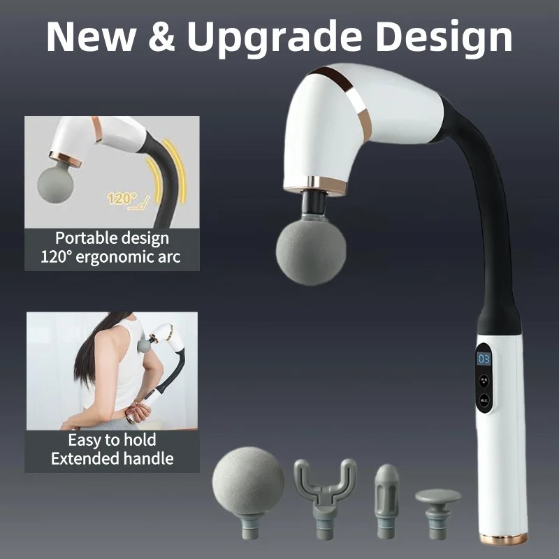 مقبض ممتد مطور وتصميم على شكل حرف U بزاوية 120 درجة: يتميز مسدس التدليك الخاص بنا بمقبض طويل للغاية وتصميم مريح على شكل حرف U بزاوية 120 درجة، مما يكسر قيود طول الذراع البشري ويمكن أن يتناسب بشكل طبيعي مع العمود الفقري والخصر. على عكس مسدسات التدليك التقليدية، يمكنك تحقيق الاسترخاء الكامل للجسم دون الحاجة إلى الانحناء أو طلب المساعدة، مما يسمح لك بالوصول بسهولة إلى مناطق أخرى يصعب الوصول إليها مثل ظهرك وكتفيك وخصرك وما إلى ذلك. سيكون هذا جهاز تدليك أساسي لأي شخص يبحث عن استرخاء العضلات.