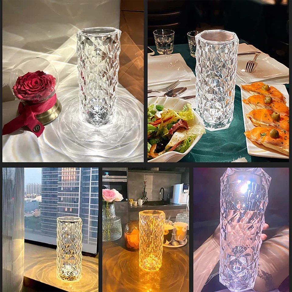 4. مصباح طاولة كريستال أكريليك جميل: مصباح الطاولة هذا مصنوع من كريستال شفاف 360 درجة، وهو ليس عمليًا فحسب، بل زخرفيًا أيضًا.